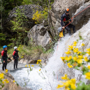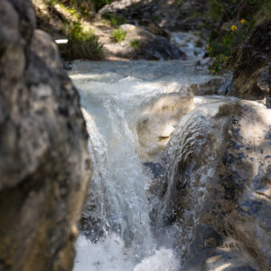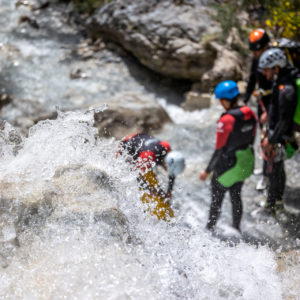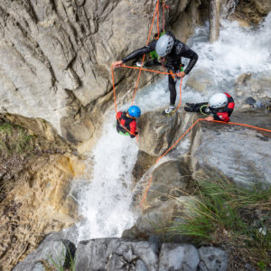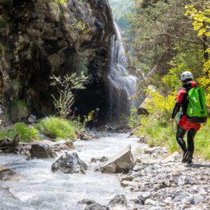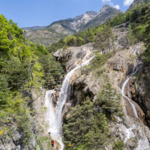 Après avoir garé les véhicules à l’aval du canyon, nous entamerons une marche d’approche d’environ 15 à 20 minutes en fonction du groupe. Ce sentier nous mènera à un point de vue saisissant : d’un côté, point clef de notre itinéraire, trois cascades se déversant dans le cours d’eau que nous nous apprêtons à descendre ; derrière nous, le panorama s’ouvre sur la vallée de l’Ubaye.