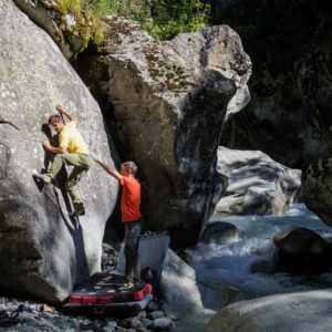 L’escalade sur bloc à Ailefroide dans les Hautes-Alpes est finalement une forme de jeu qui permet de s’approprier des lignes de grimpe, et qui a l’avantage d’être complètement hors des sentiers battus.