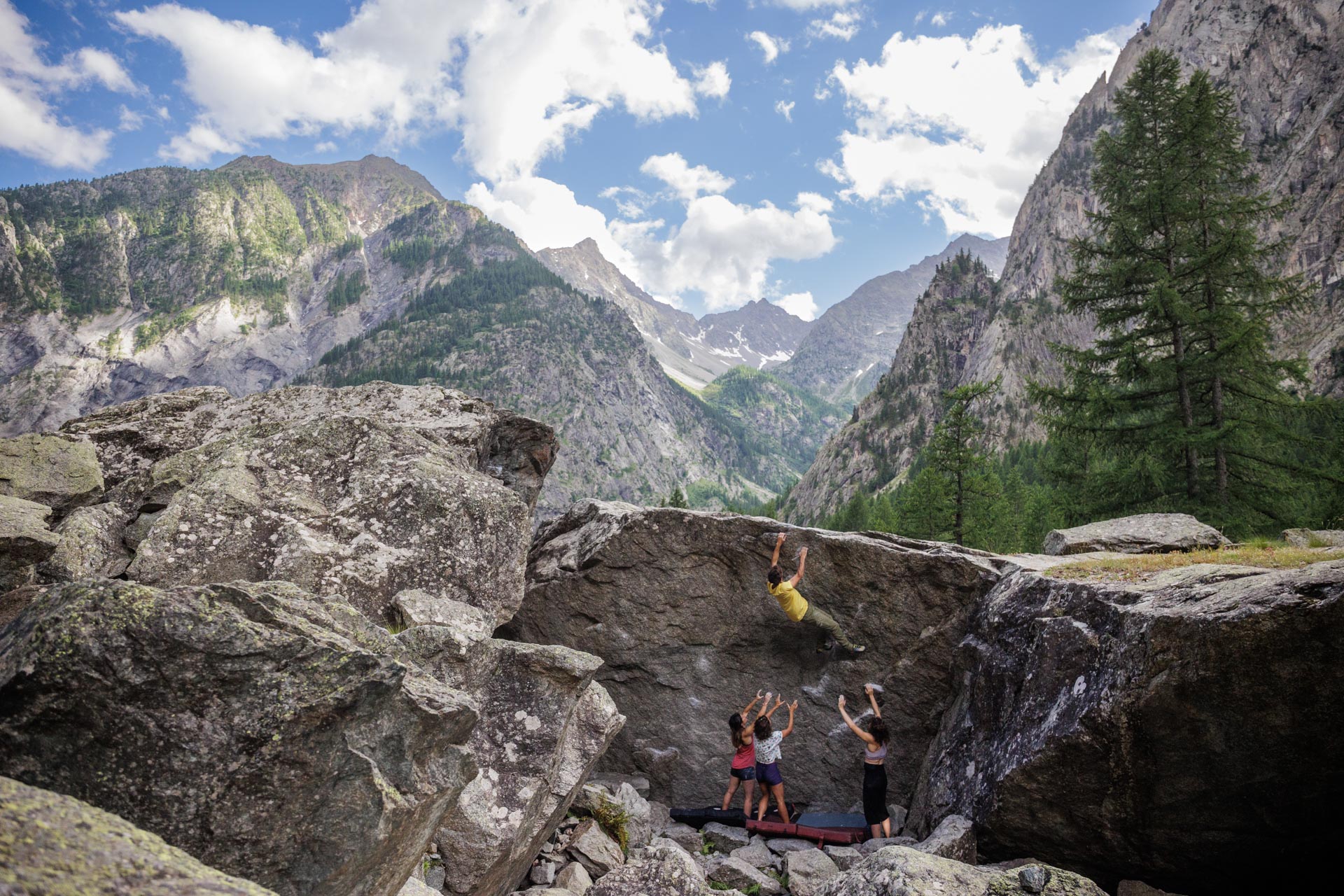 L’escalade sur bloc à Ailefroide dans les Hautes-Alpes est finalement une forme de jeu qui permet de s’approprier des lignes de grimpe, et qui a l’avantage d’être complètement hors des sentiers battus.