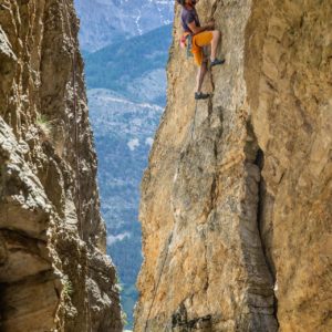 Le conglomérat, LE rocher atypique des Écrins, au pied de la place forte Vauban de Mont-Dauphin. Ce lieu regorge de secteurs à l’ombre grâce aux voies d’escalades situées dans les gorges de la rue des Masques. La gestion de l’effort, les repos et la qualité de la gestuelle vous garantissent de belles ascensions.
