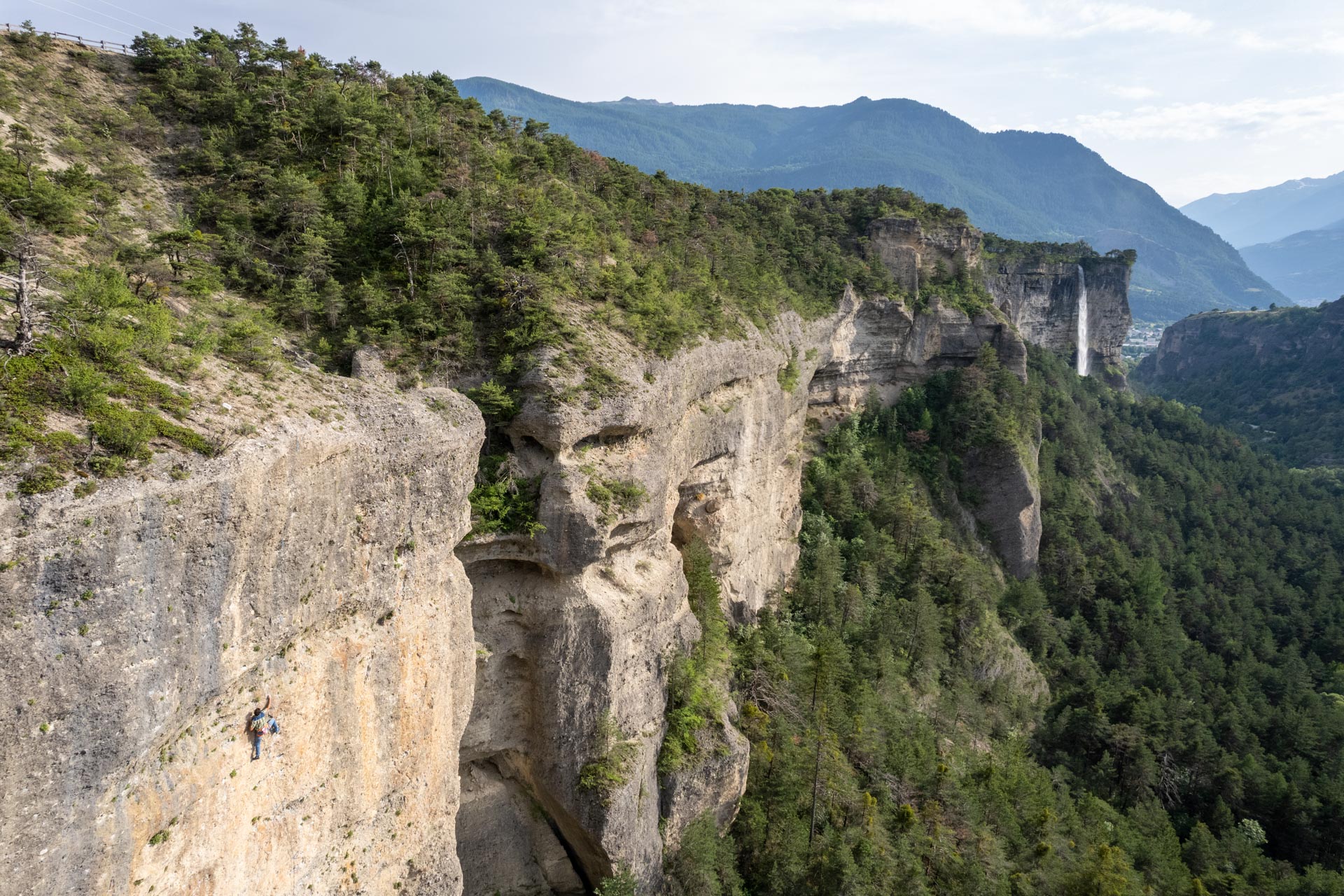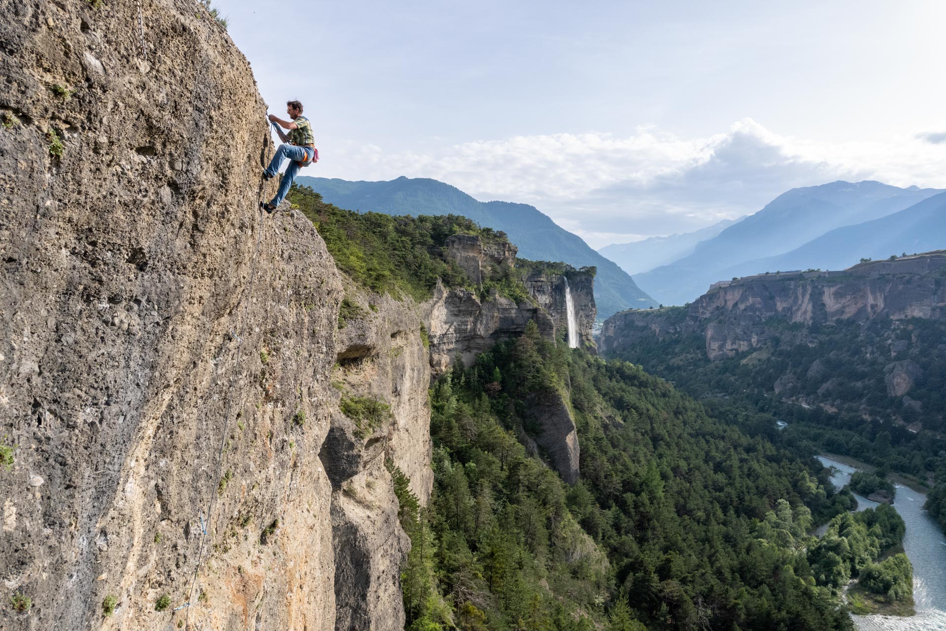 Un calcaire à strate oblique plein sud. La vue sur les gorges de la Durance, dans le pays des Écrins, est unique. Lecture de voie et exercices de préhension de prises seraient deux thématiques idéales pour une session Perfectionnement.