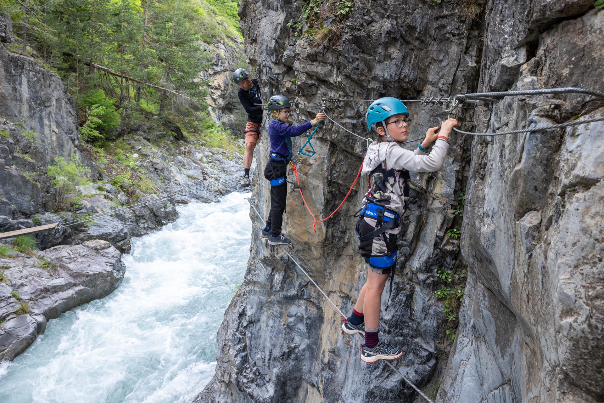 Personnellement, je recommande ce parcours de Château-Queyras à toute personne souhaitant vivre une première expérience en via ferrata. Elle convient parfaitement aux familles accompagnées d’enfants, à partir de 9 ans (suivant leur taille et aisance face au vide). Grâce à la modeste hauteur surplombant la rivière du Guil, adultes, ados et enfants pourront y trouver chacun leur plaisir.