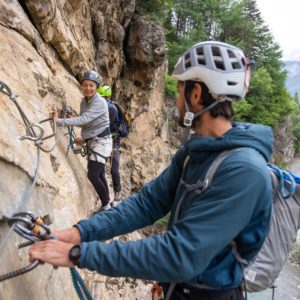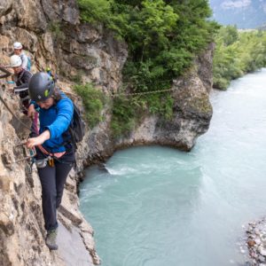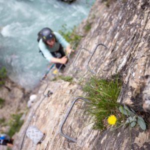 Une vire escarpée qui rejoint le lit de la rivière donne accès à la seconde partie de cette via ferrata. Commence alors une superbe ascension de 80 mètres.